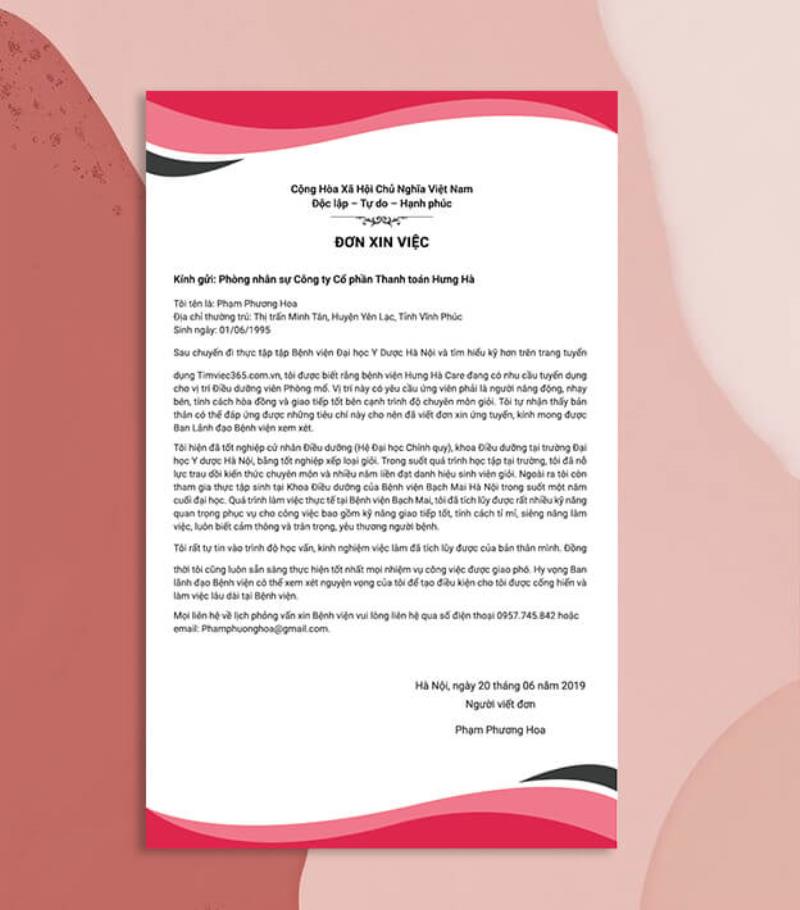 Phần tiêu đề cần viết to, rõ ràng nên chọn chữ in đứng sẽ chuyên nghiệp và lịch sự hơn. Chữ “ĐƠN XIN VIỆC” cần được căn lề giữa và viết in hoa có dấu.