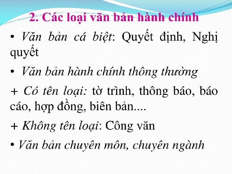 Các loại văn bản hành chính tiêu biểu